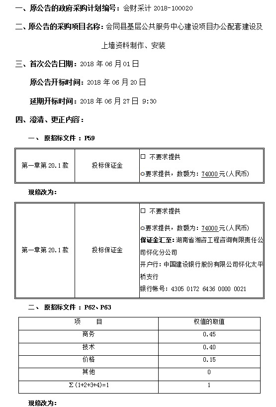 會同縣基層公共服務(wù)中心建設(shè)項(xiàng)目 辦公配套建設(shè)及上墻資料制作、安裝 澄清、更正公告