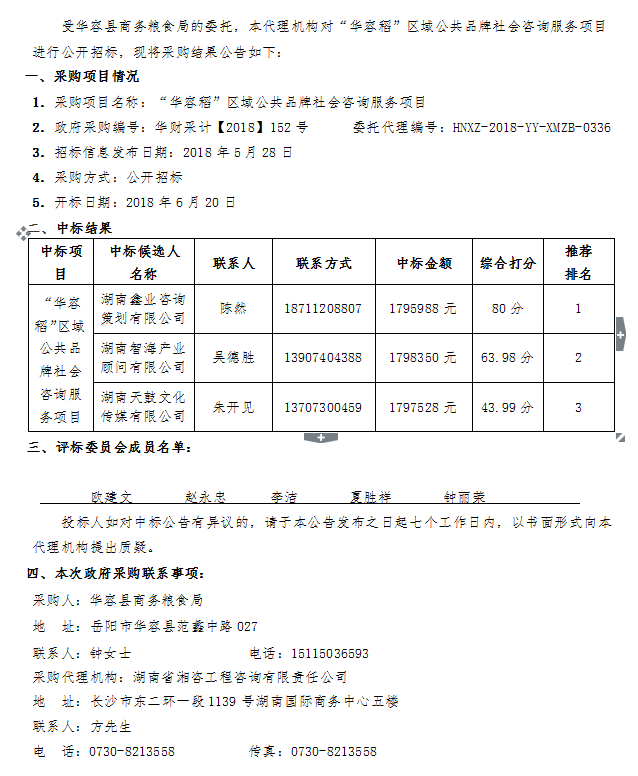 “華容稻”區(qū)域公共品牌社會(huì)咨詢服務(wù)項(xiàng)目公開招標(biāo)中標(biāo)公告
