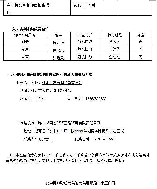 邵陽市“十三五”規(guī)劃綱要實(shí)施情況中期評估報告項目談判成交公告