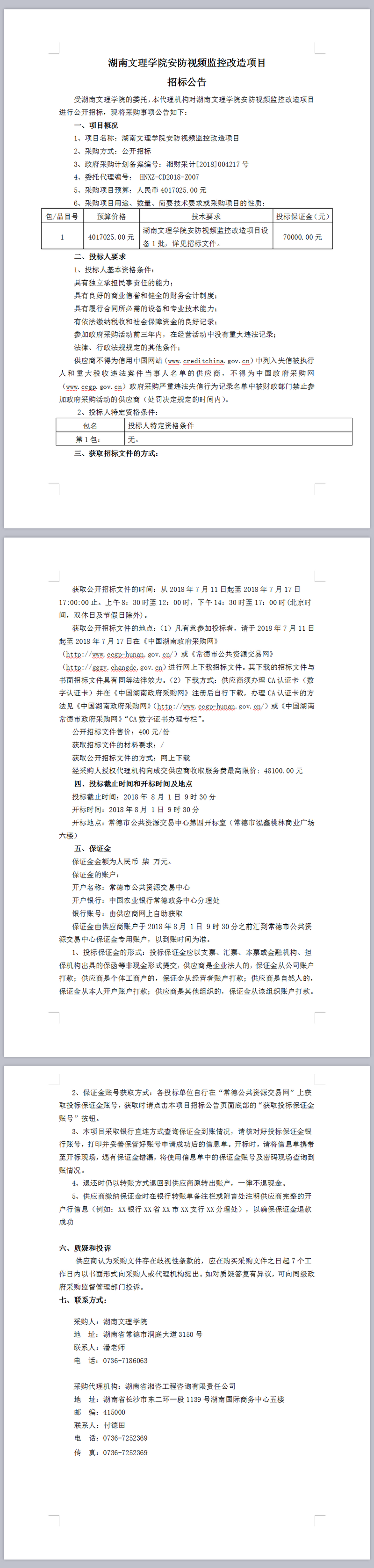 湖南文理學(xué)院安防視頻監(jiān)控改造項(xiàng)目招標(biāo)公告