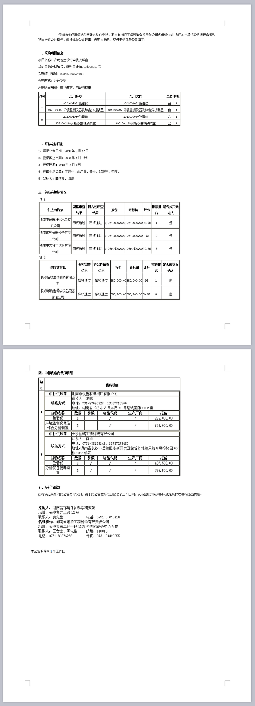 湖南省環(huán)境保護科學研究院農(nóng)用地土壤污染狀況詳查公開招標中標公告