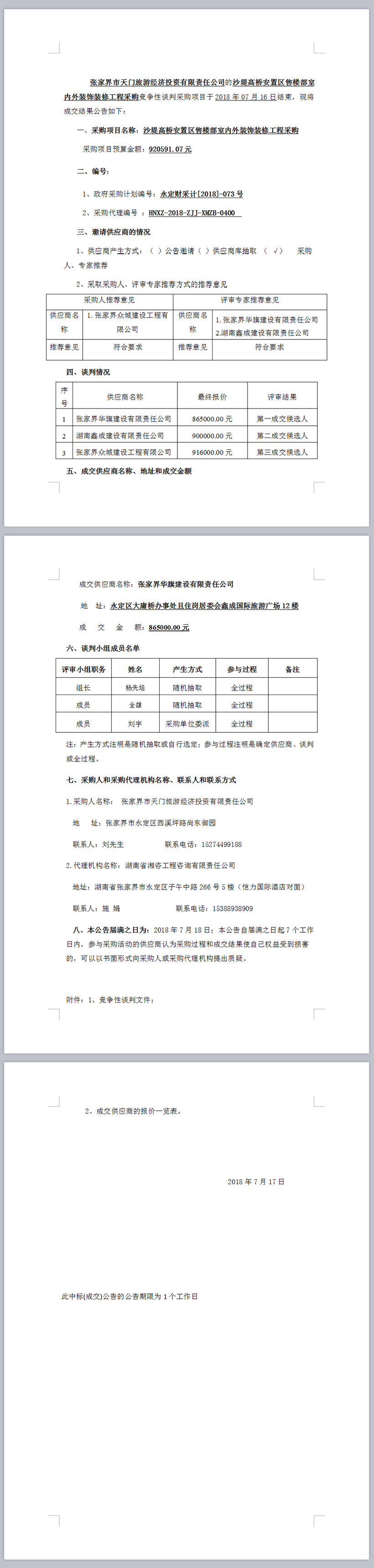 沙堤高橋安置區(qū)售樓部室內外裝飾裝修工程采購談判成交公告