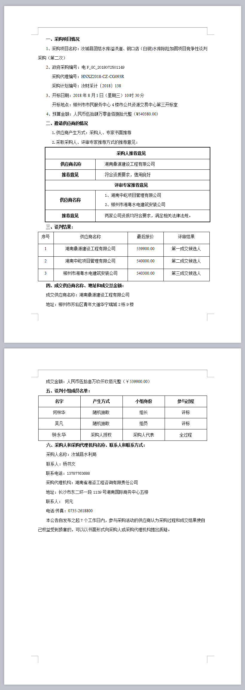 汝城縣團(tuán)結(jié)水庫(kù)溢洪道、鋼口店(白鋼)水庫(kù)除險(xiǎn)加固項(xiàng)目競(jìng)爭(zhēng)性談判采購(gòu)(第二次)成交公告