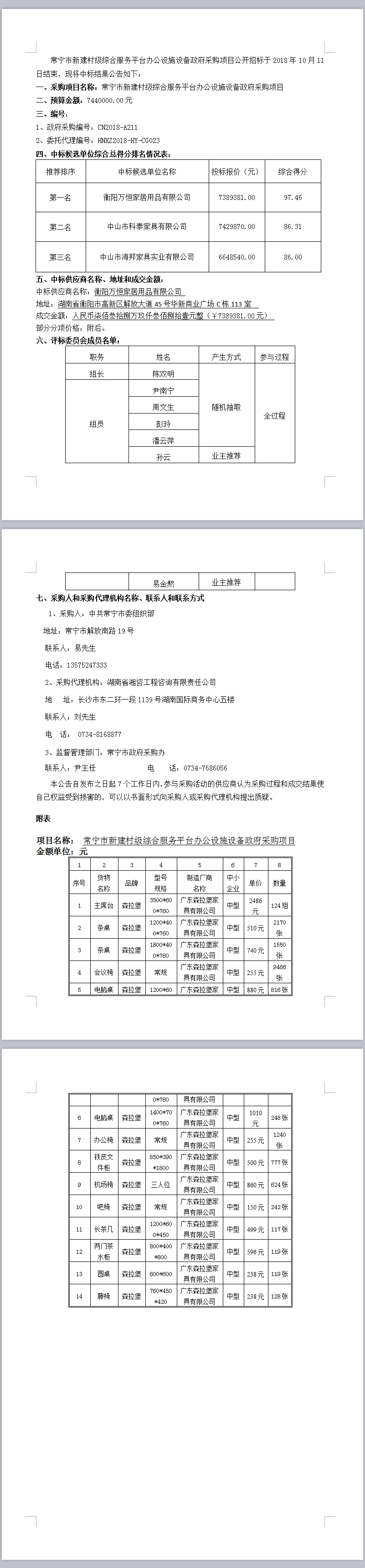 常寧市新建村級綜合服務(wù)平臺辦公設(shè)施設(shè)備政府采購項目公開招標中標公告