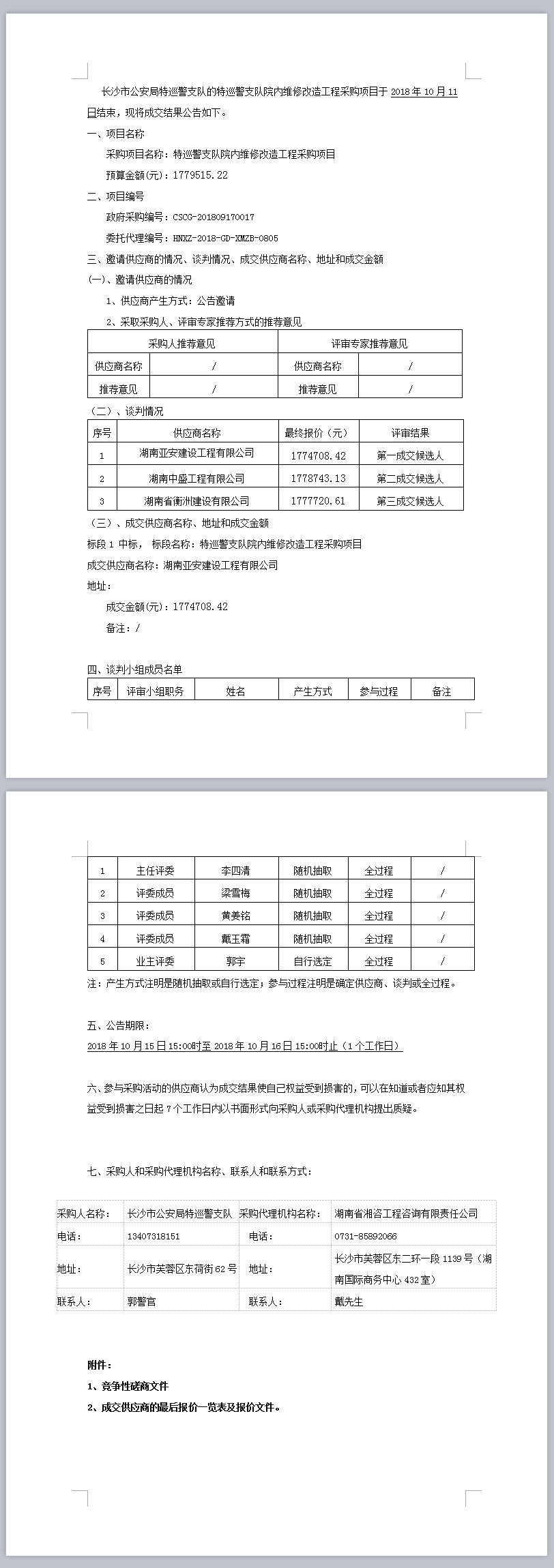 特巡警支隊(duì)院內(nèi)維修改造工程采購(gòu)項(xiàng)目結(jié)果公告