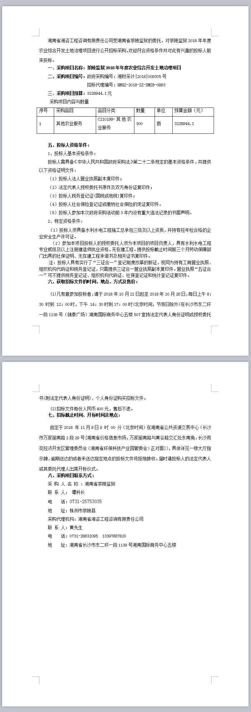 茶陵監(jiān)獄2018年年度農(nóng)業(yè)綜合開發(fā)土地治理項目招標(biāo)公告