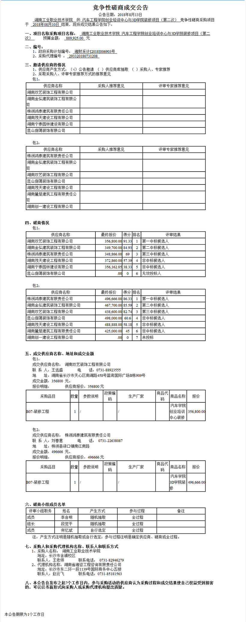 湖南工業(yè)職業(yè)技術(shù)學(xué)院汽車工程學(xué)院的創(chuàng)業(yè)培訓(xùn)中心和3D學(xué)院裝修工程項(xiàng)目(第二次)競(jìng)爭(zhēng)性磋商成交公告