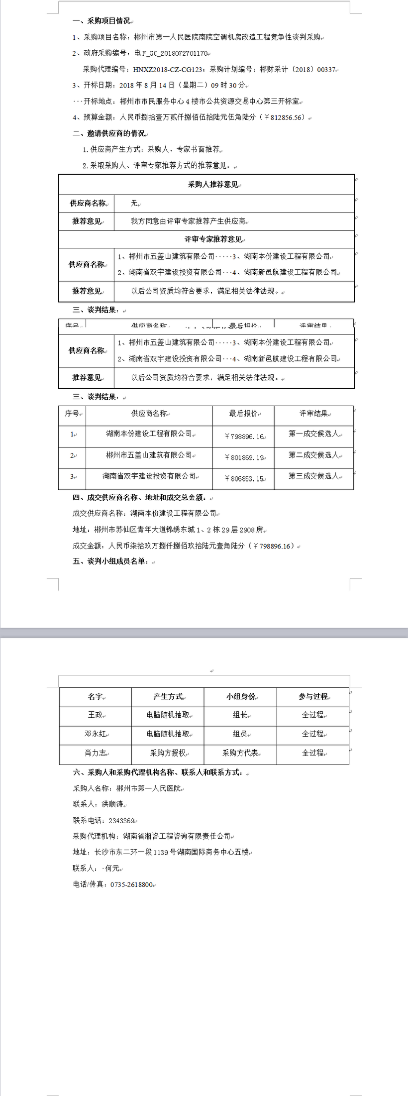 郴州市第一人民醫(yī)院南院空調(diào)機(jī)房改造工程競(jìng)爭(zhēng)性談判采購(gòu)成交公告
