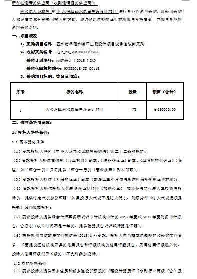 四水治理暖水鎮(zhèn)田莊段設(shè)計(jì)項(xiàng)目競爭性談判采購 邀請(qǐng)通知