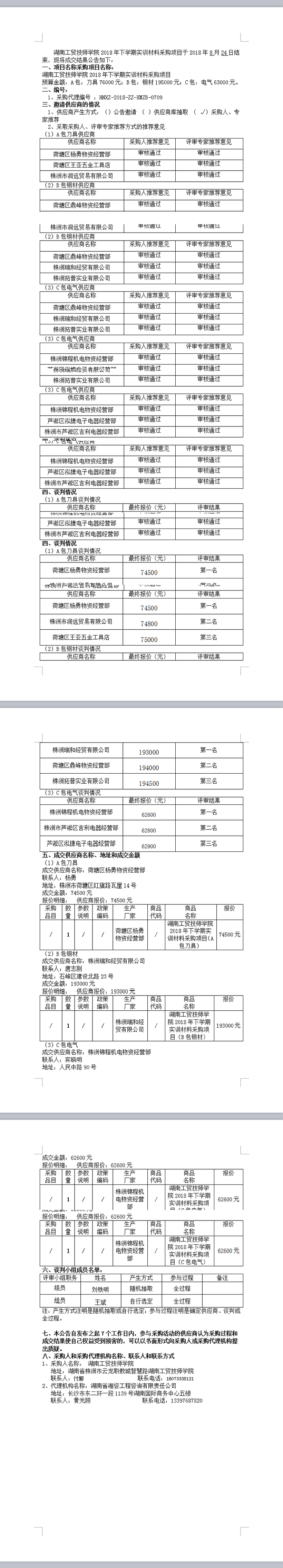 湖南工貿(mào)技師學(xué)院2018年下學(xué)期實訓(xùn)材料采購項目競爭性談判成交公告