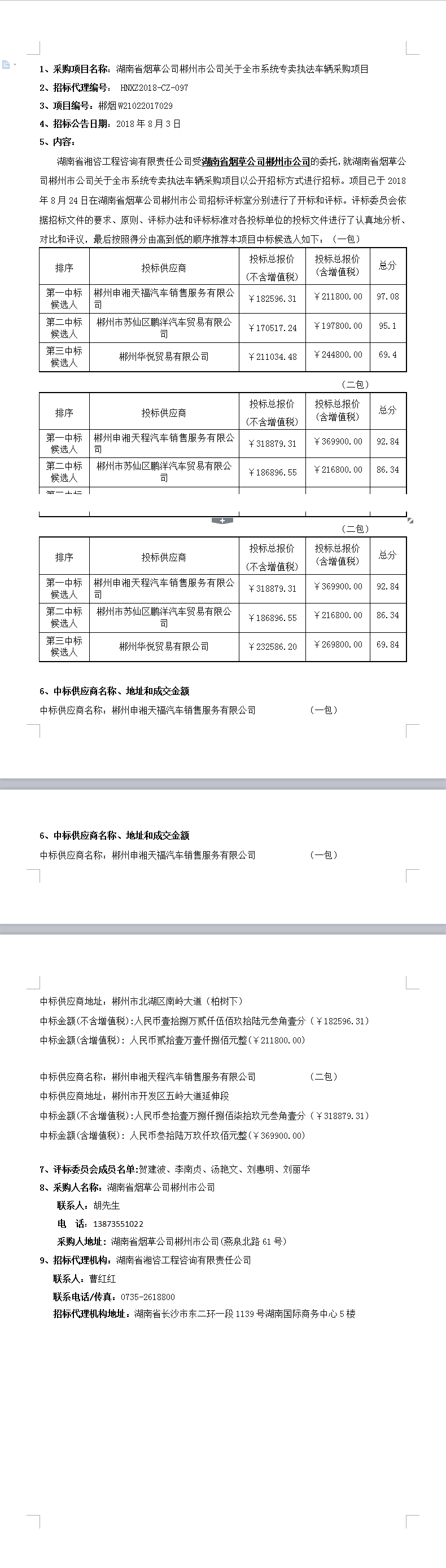 湖南省煙草公司郴州市公司關(guān)于全市系統(tǒng)專賣執(zhí)法車輛采購(gòu)項(xiàng)目中標(biāo)結(jié)果公示