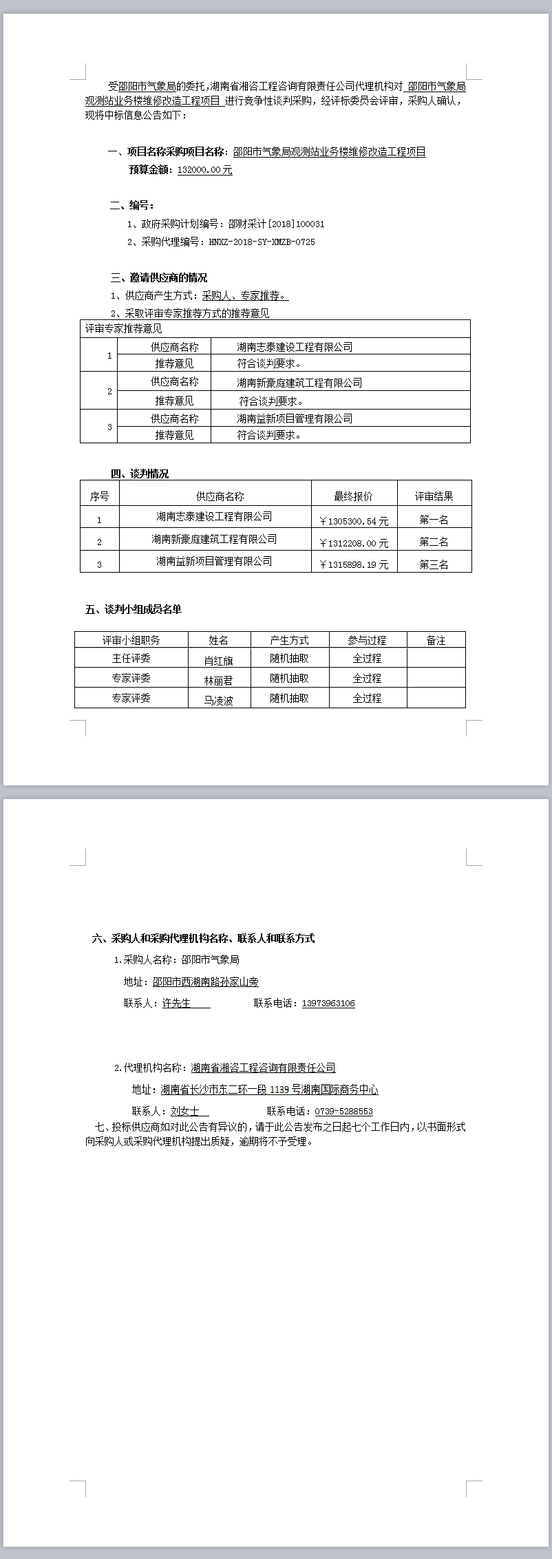 邵陽(yáng)市氣象局觀測(cè)站業(yè)務(wù)樓維修改造工程項(xiàng)目 競(jìng)爭(zhēng)性談判成交公告