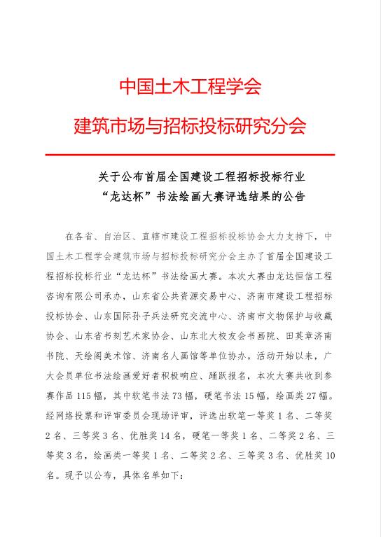 【喜訊】熱烈祝賀我司王佳勇在首屆全國建設(shè)工程招標(biāo)投標(biāo)行業(yè)?“龍達杯”書法繪畫大賽獲得軟筆類優(yōu)勝獎