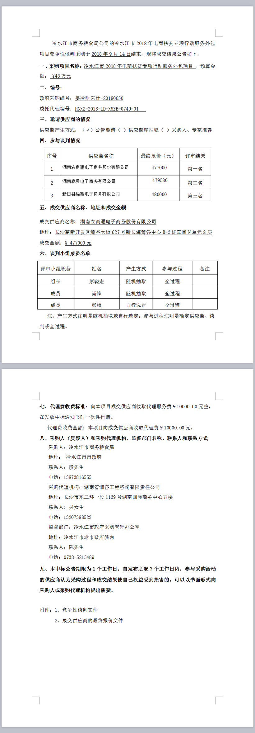 冷水江市2018年電商扶貧專項行動服務(wù)外包項目競爭性談判成交公告