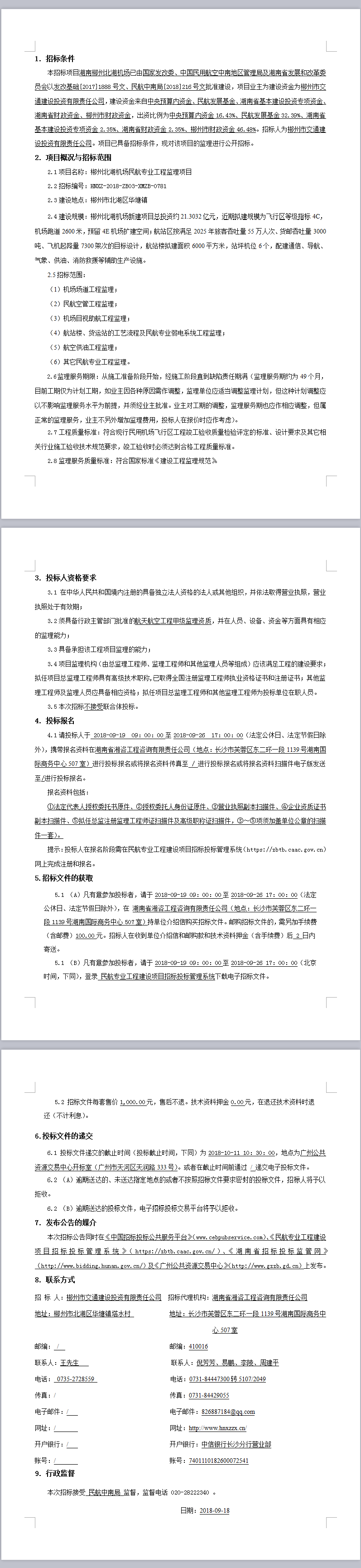 郴州北湖機(jī)場(chǎng)民航專業(yè)工程監(jiān)理項(xiàng)目招標(biāo)公告