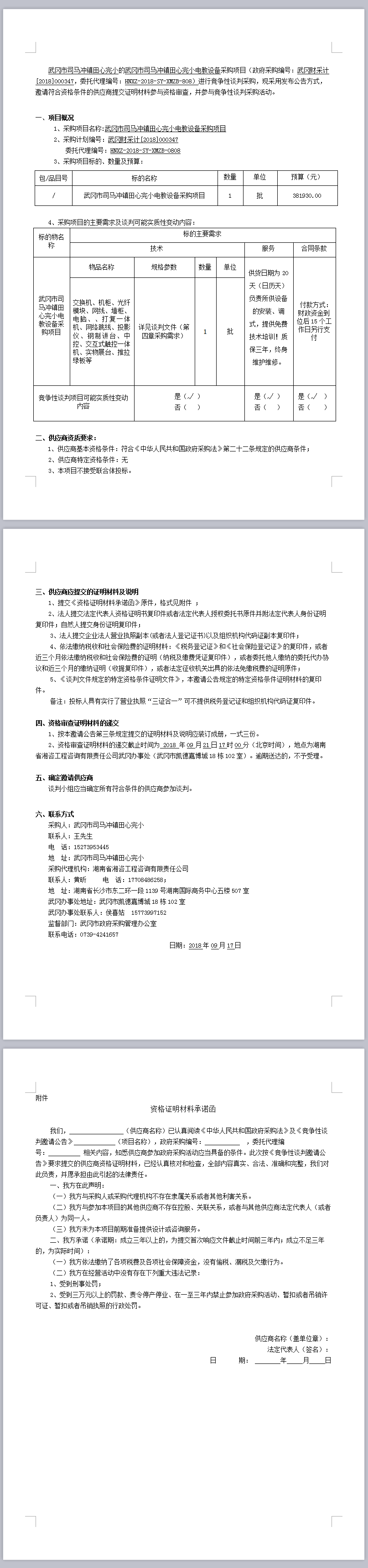 武岡市司馬沖鎮(zhèn)田心完小電教設(shè)備采購項目 競爭性談判邀請公告
