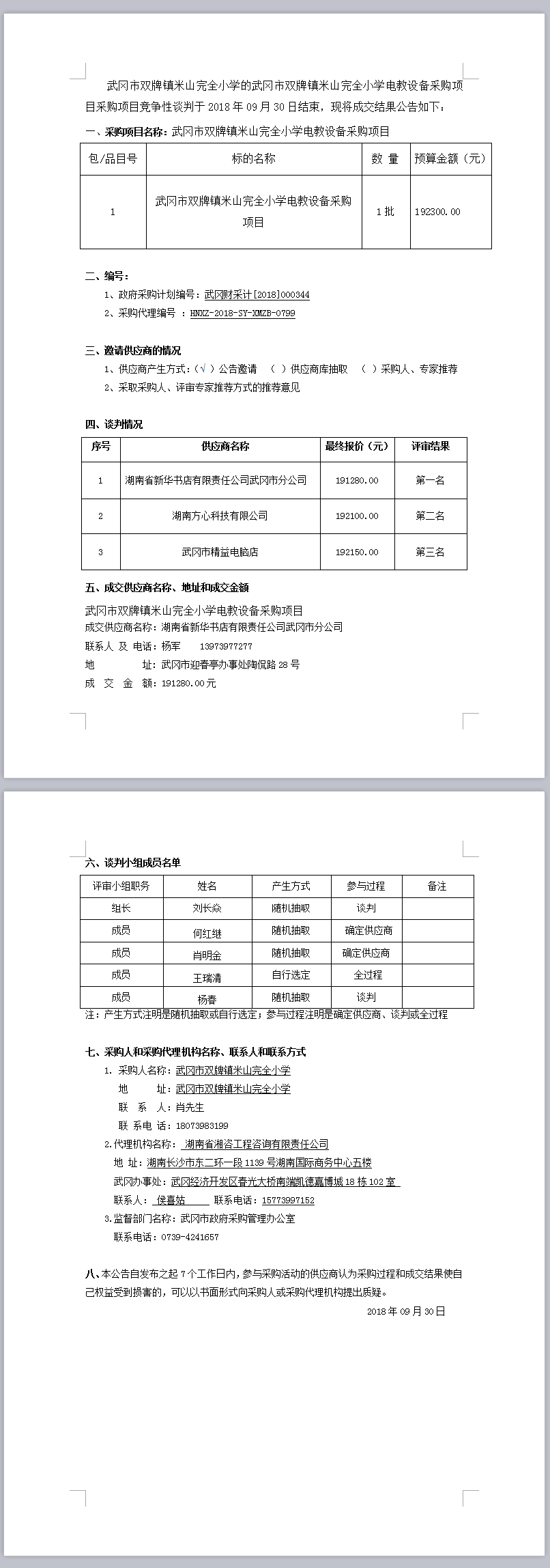 武岡市雙牌鎮(zhèn)米山完全小學(xué)電教設(shè)備采購(gòu)項(xiàng)目競(jìng)爭(zhēng)性談判成交結(jié)果公告