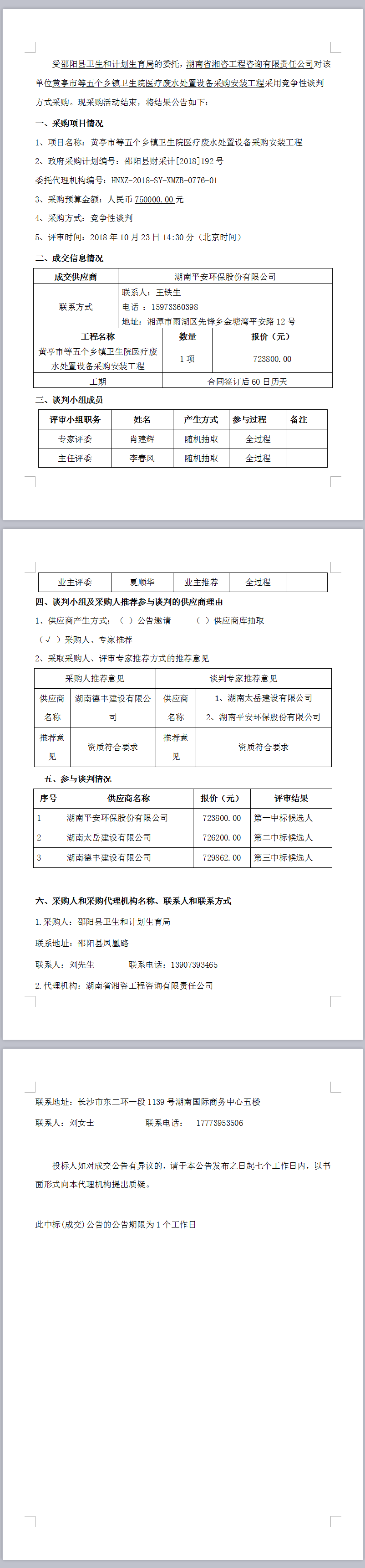 黃亭市等五個鄉(xiāng)鎮(zhèn)衛(wèi)生院醫(yī)療廢水處置設(shè)備采購安裝工程談判成交公告