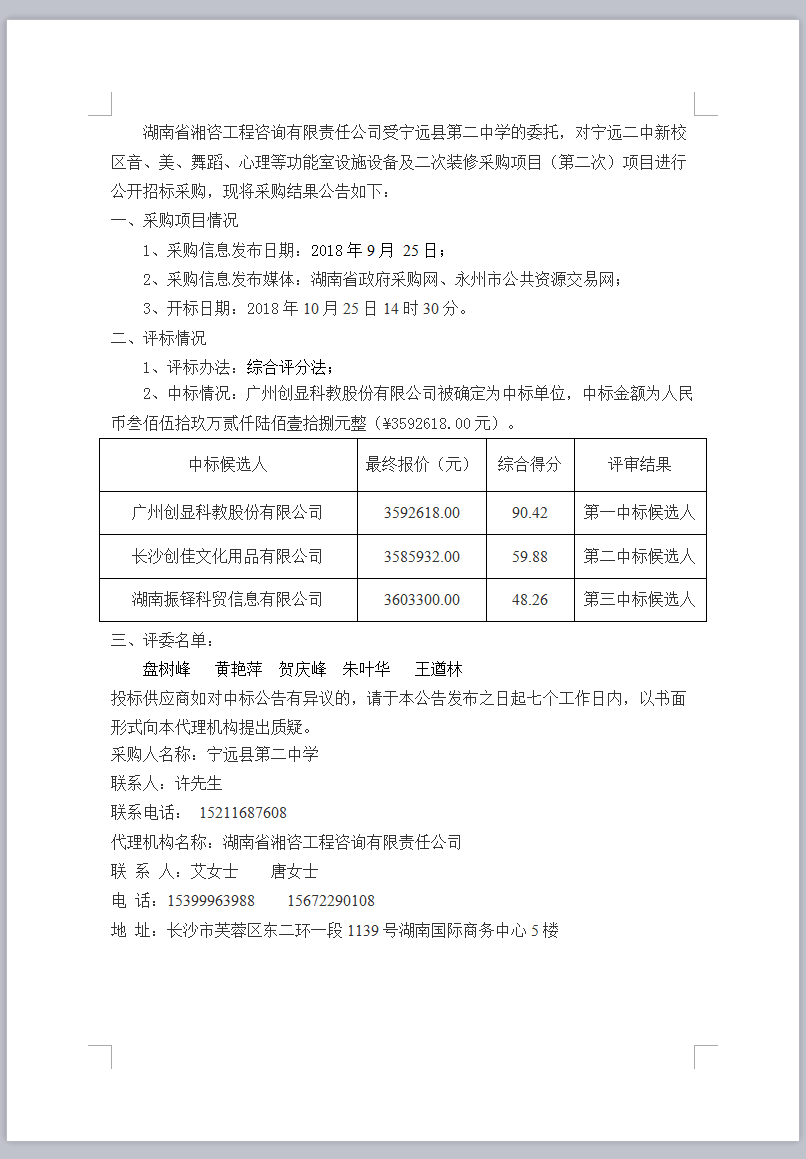寧遠二中新校區(qū)音、美、舞蹈、心理等功能室設(shè)施設(shè)備及二次裝修采購項目中標公告