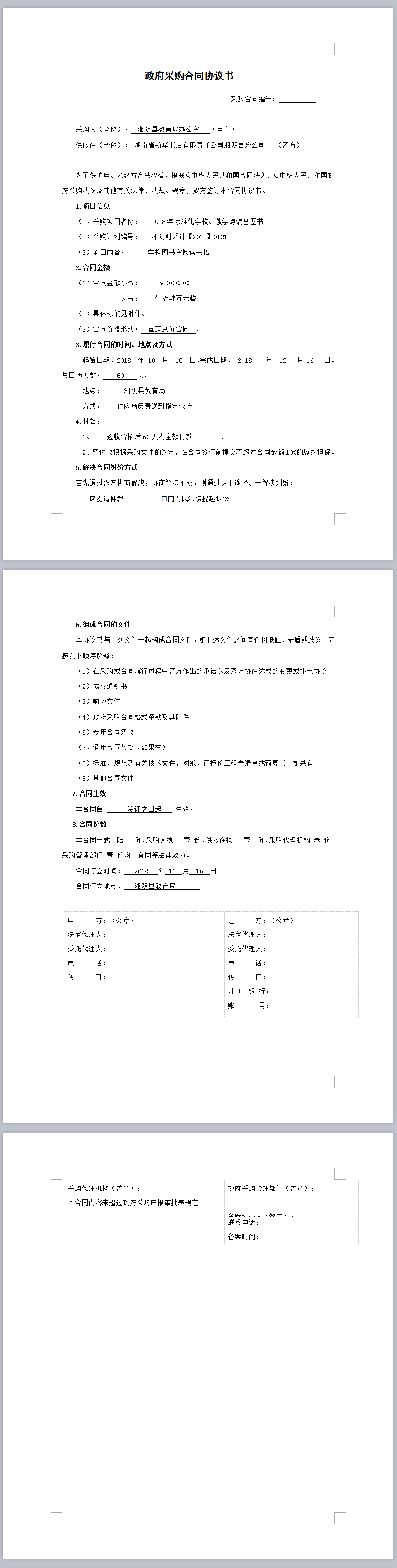 2018年標(biāo)準(zhǔn)化學(xué)校、教學(xué)點裝備圖書政府采購合同協(xié)議書