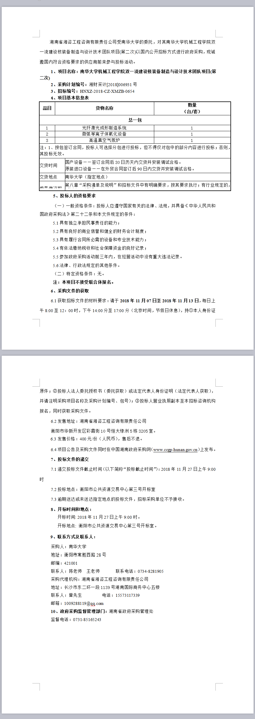 南華大學(xué)機(jī)械工程學(xué)院雙一流建設(shè)核裝備制造與設(shè)計(jì)技術(shù)團(tuán)隊(duì)項(xiàng)目(第二次)  招標(biāo)公告