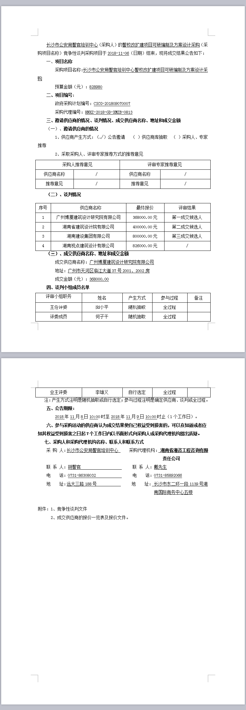 長沙市公安局警官培訓(xùn)中心警校改擴建項目可研編制及方案設(shè)計采購競爭性談判成交結(jié)果公告