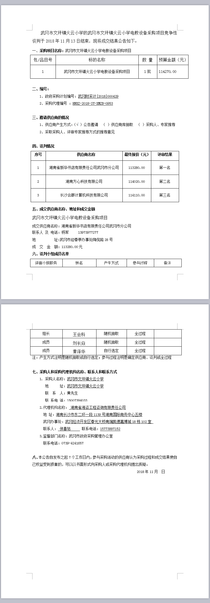 武岡市文坪鎮(zhèn)火云小學(xué)電教設(shè)備采購(gòu)項(xiàng)目競(jìng)爭(zhēng)性談判成交結(jié)果公告