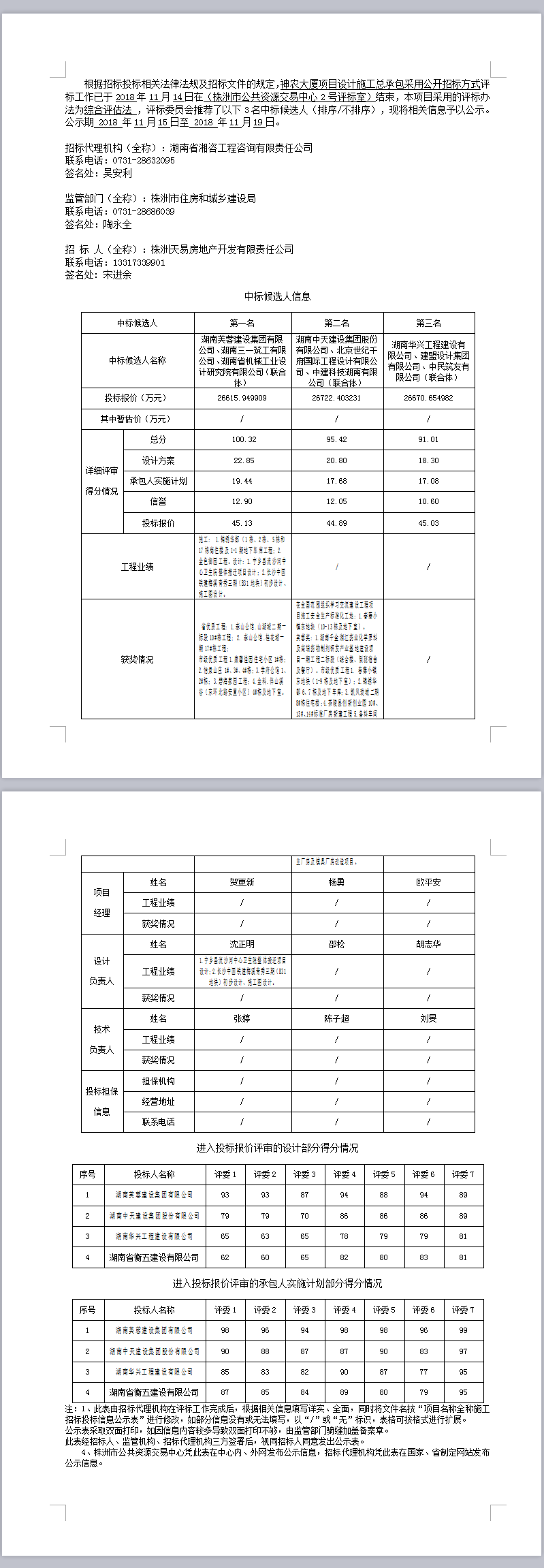 神農大廈項目設計施工總承包招標投標信息公示表