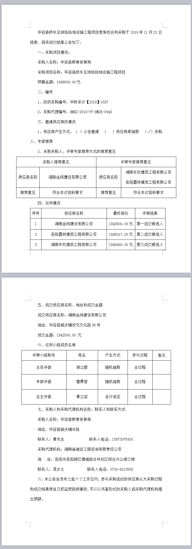 華容縣橋東足球場(chǎng)場(chǎng)地設(shè)施工程項(xiàng)目 競(jìng)爭(zhēng)性談判成交結(jié)果公告