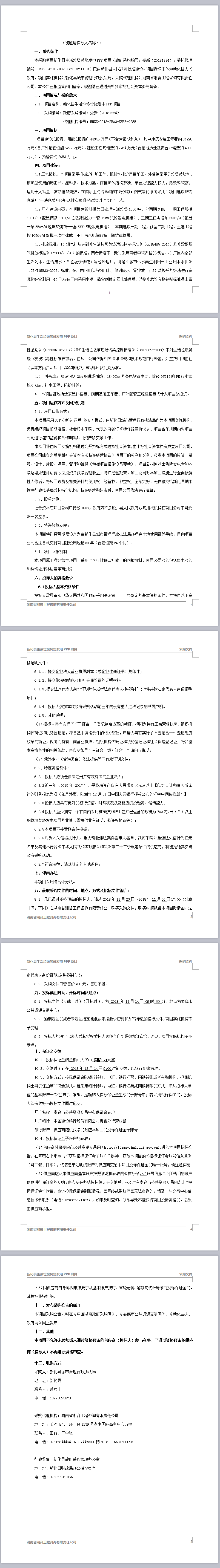 新化縣生活垃圾焚燒發(fā)電PPP項(xiàng)目采購(gòu)邀請(qǐng)(代采購(gòu)公告)