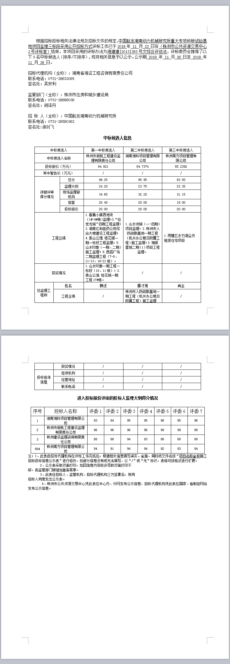 中國(guó)航發(fā)湖南動(dòng)力機(jī)械研究所重大專項(xiàng)科研試驗(yàn)基地項(xiàng)目監(jiān)理三標(biāo)段招標(biāo)投標(biāo)信息公示表