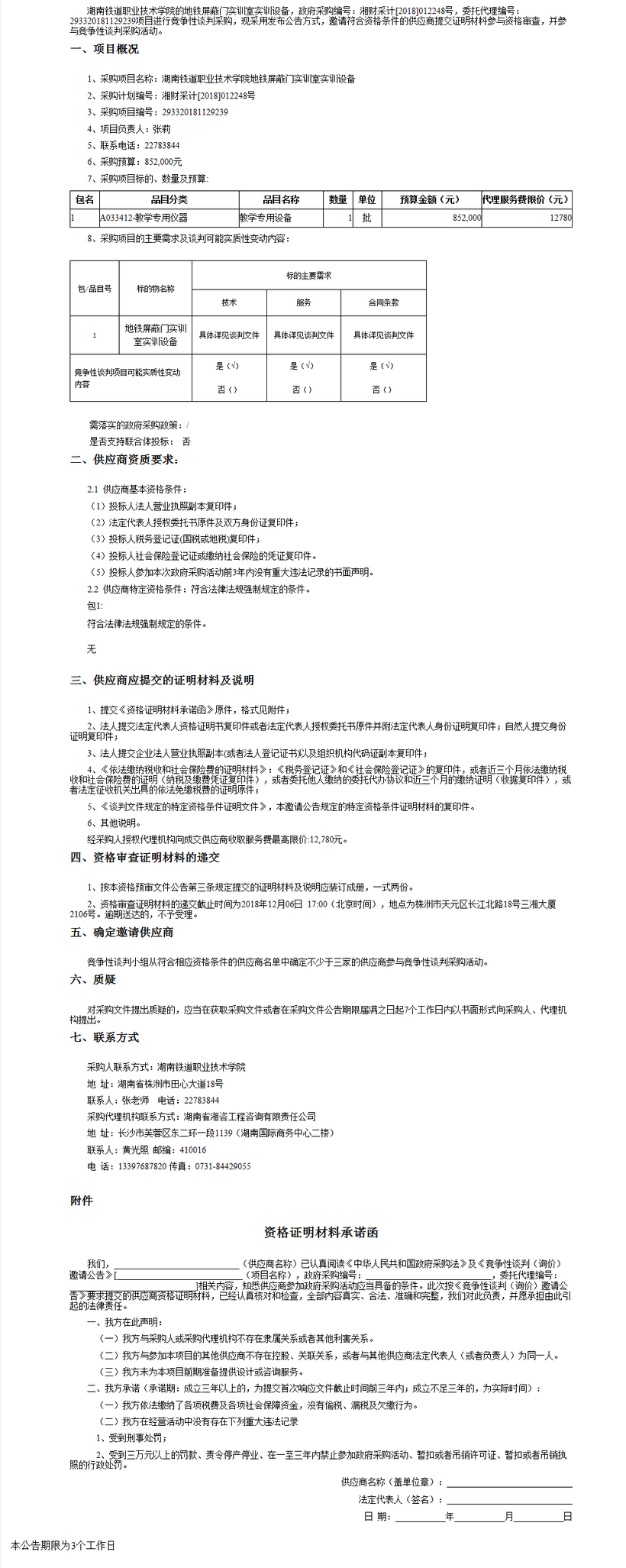 湖南鐵道職業(yè)技術(shù)學(xué)院地鐵屏蔽門實(shí)訓(xùn)室實(shí)訓(xùn)設(shè)備項(xiàng)目競(jìng)爭(zhēng)性談判邀請(qǐng)公告