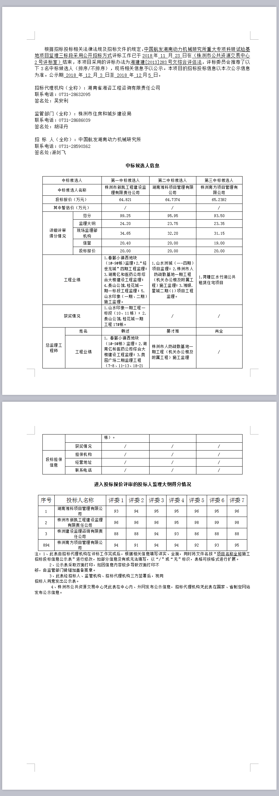 中國航發(fā)湖南動(dòng)力機(jī)械研究所重大專項(xiàng)科研試驗(yàn)基地項(xiàng)目監(jiān)理三標(biāo)段 招標(biāo)投標(biāo)信息公示表