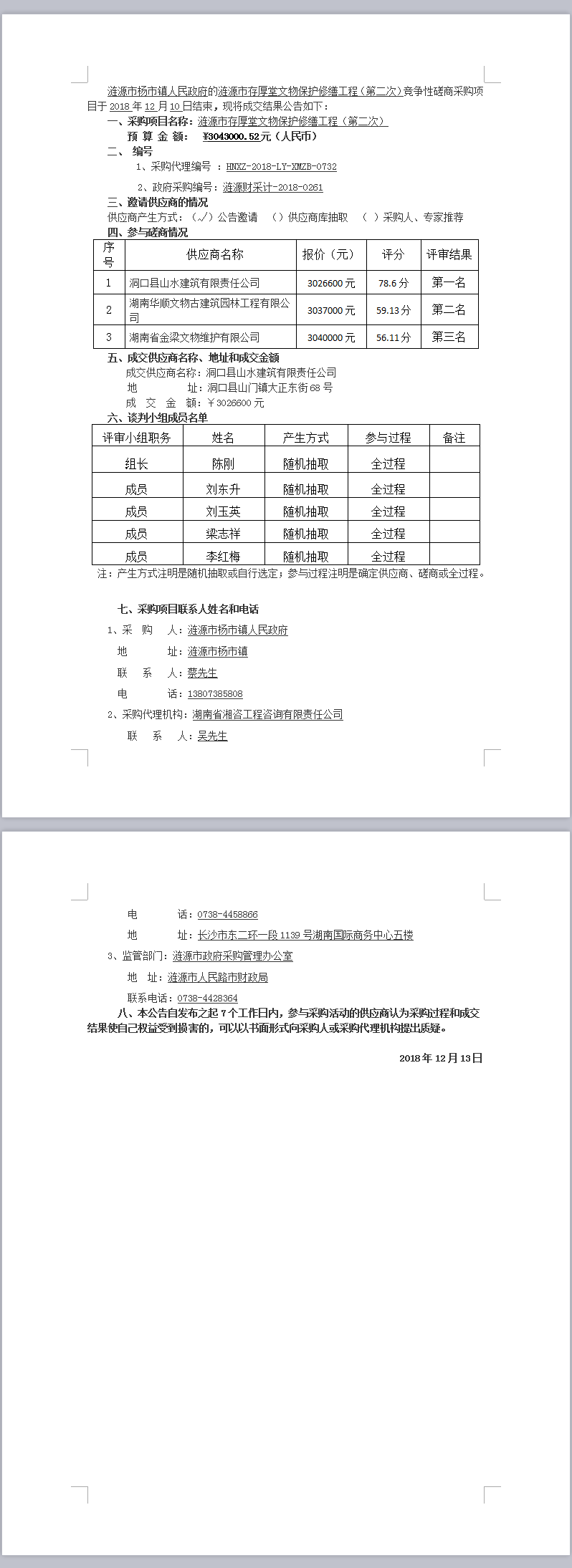 漣源市存厚堂文物保護(hù)修繕工程(第二次) 競(jìng)爭(zhēng)性磋商成交結(jié)果公告