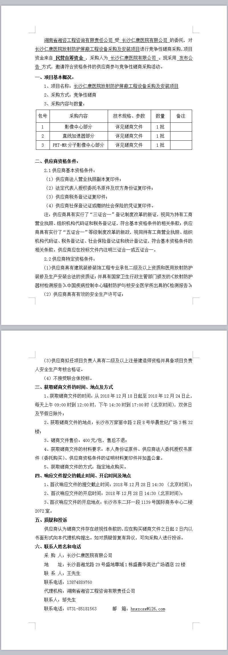 長(zhǎng)沙仁康醫(yī)院放射防護(hù)屏蔽工程設(shè)備采購(gòu)及安裝項(xiàng)目磋商邀請(qǐng)公告