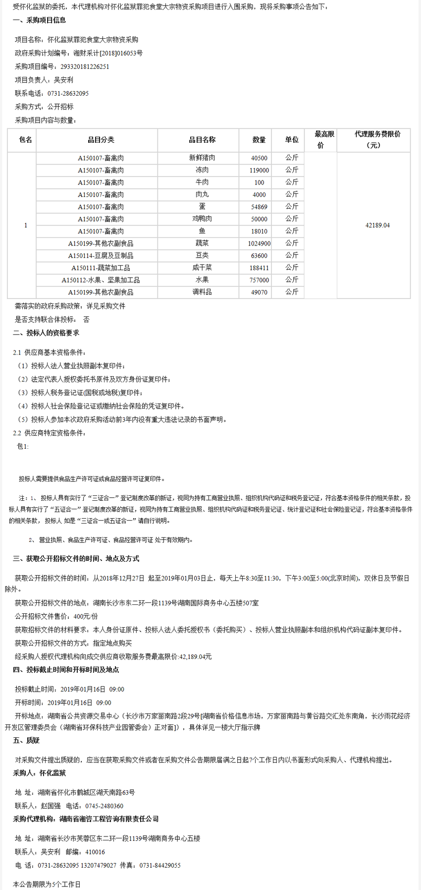 懷化監(jiān)獄罪犯食堂大宗物資采購項(xiàng)目入圍采購公開招標(biāo)公告
