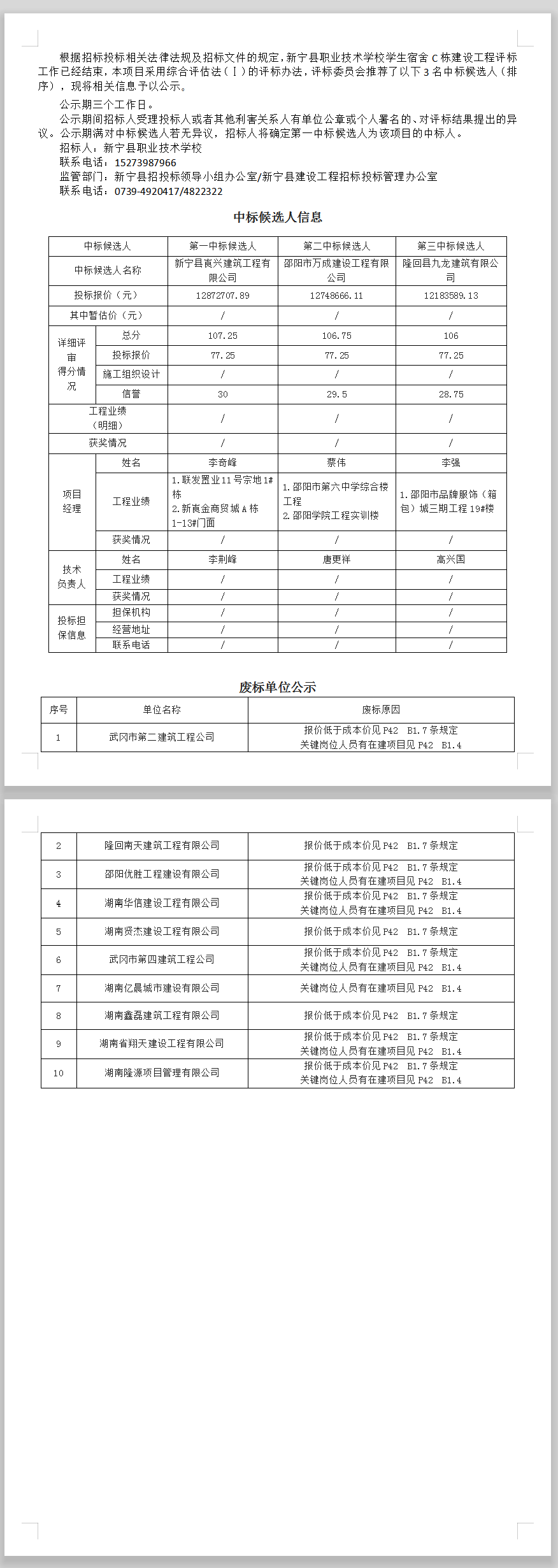 新寧縣職業(yè)技術學校學生宿舍C棟建設工程中標候選人公示