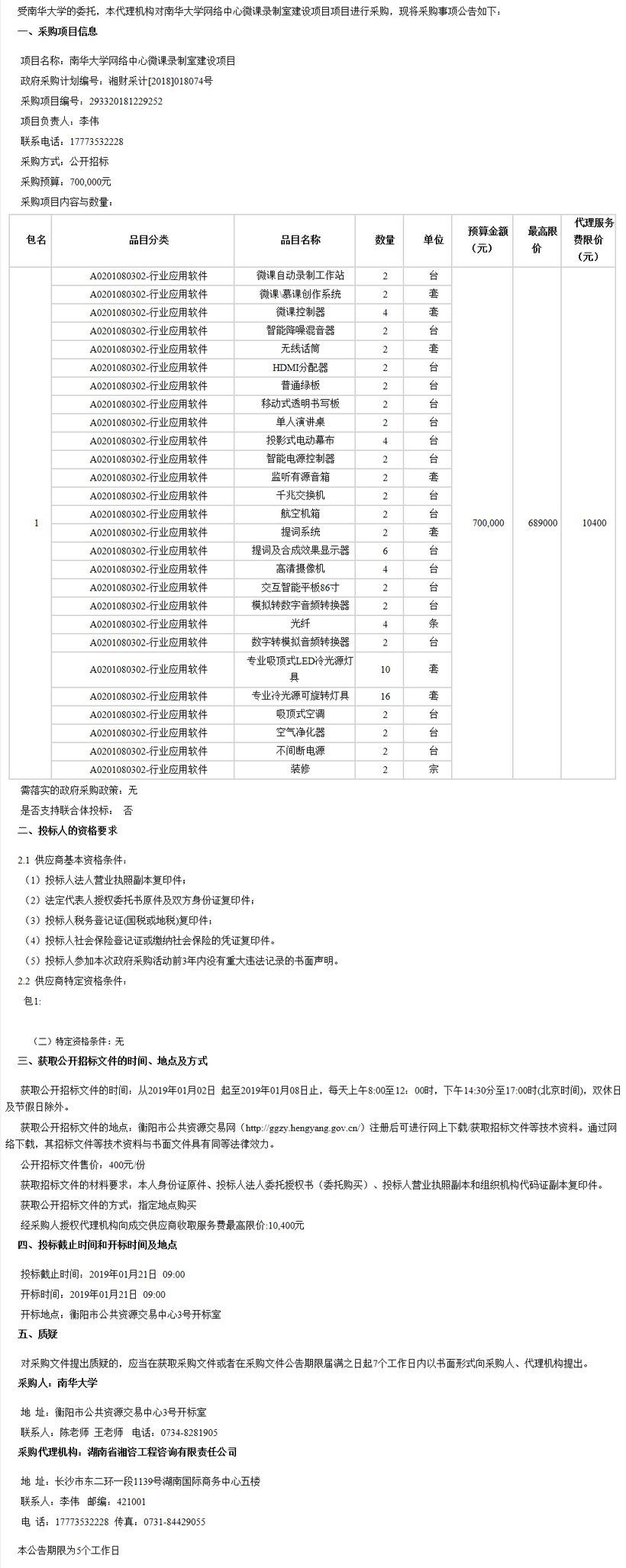 南華大學(xué)網(wǎng)絡(luò)信息中心微課錄制室建設(shè)項(xiàng)目招標(biāo)公告