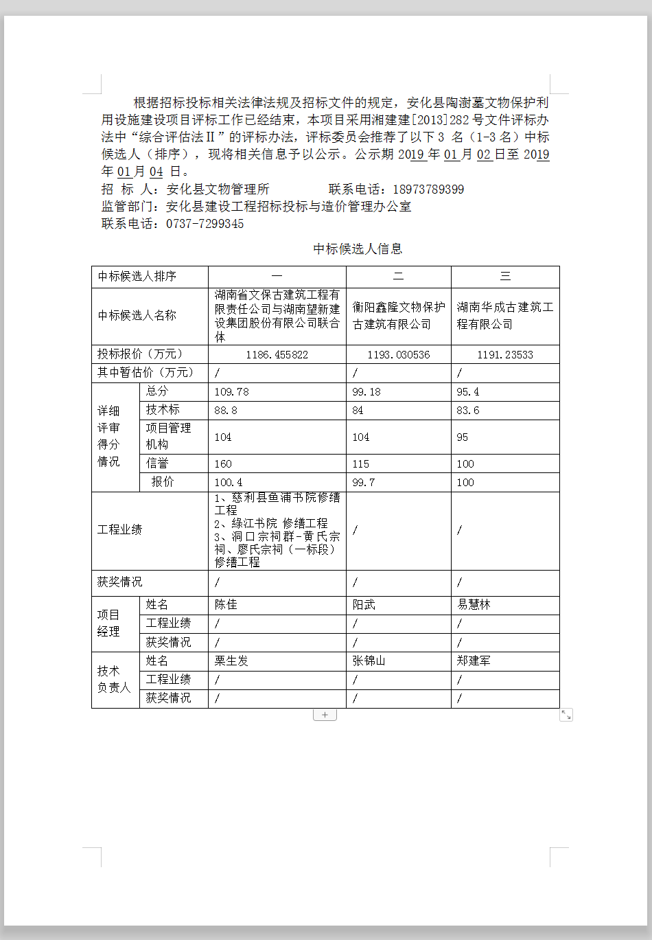 安化縣陶澍墓文物保護(hù)利用設(shè)施建設(shè)項目中標(biāo)候選人公示更正公告