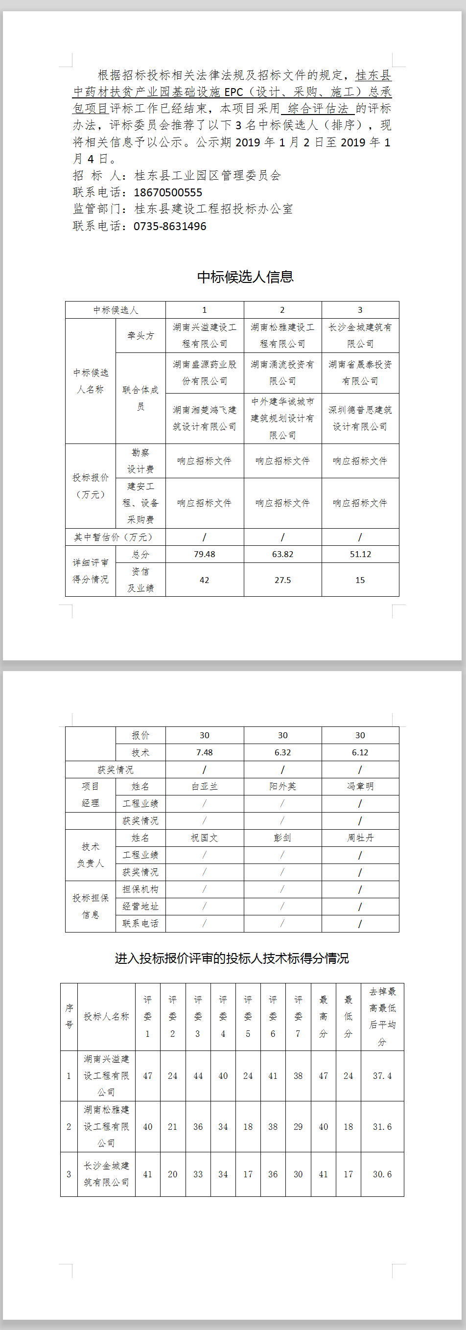 桂東縣中藥材扶貧產(chǎn)業(yè)園基礎(chǔ)設(shè)施EPC(設(shè)計、采購、施工)總承包項目中標候選人公示