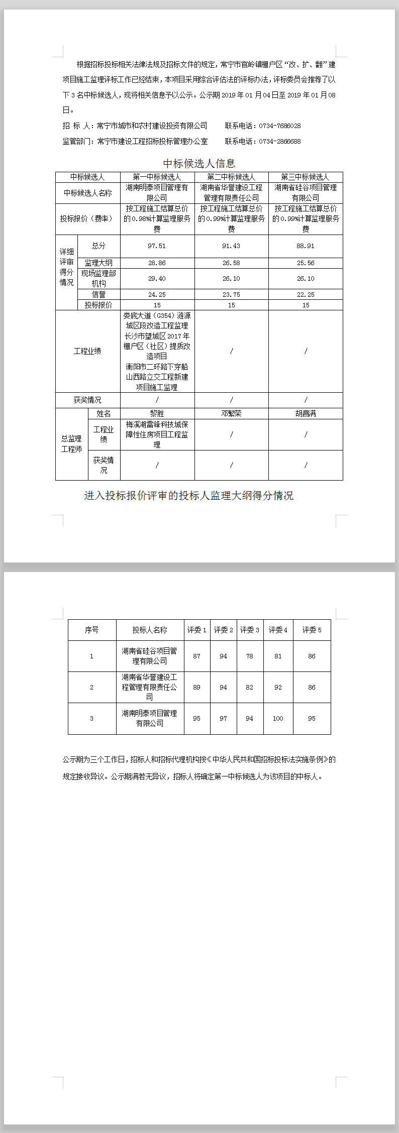 常寧市官嶺鎮(zhèn)棚戶區(qū)“改、擴、翻”建項目施工監(jiān)理中標候選人公示