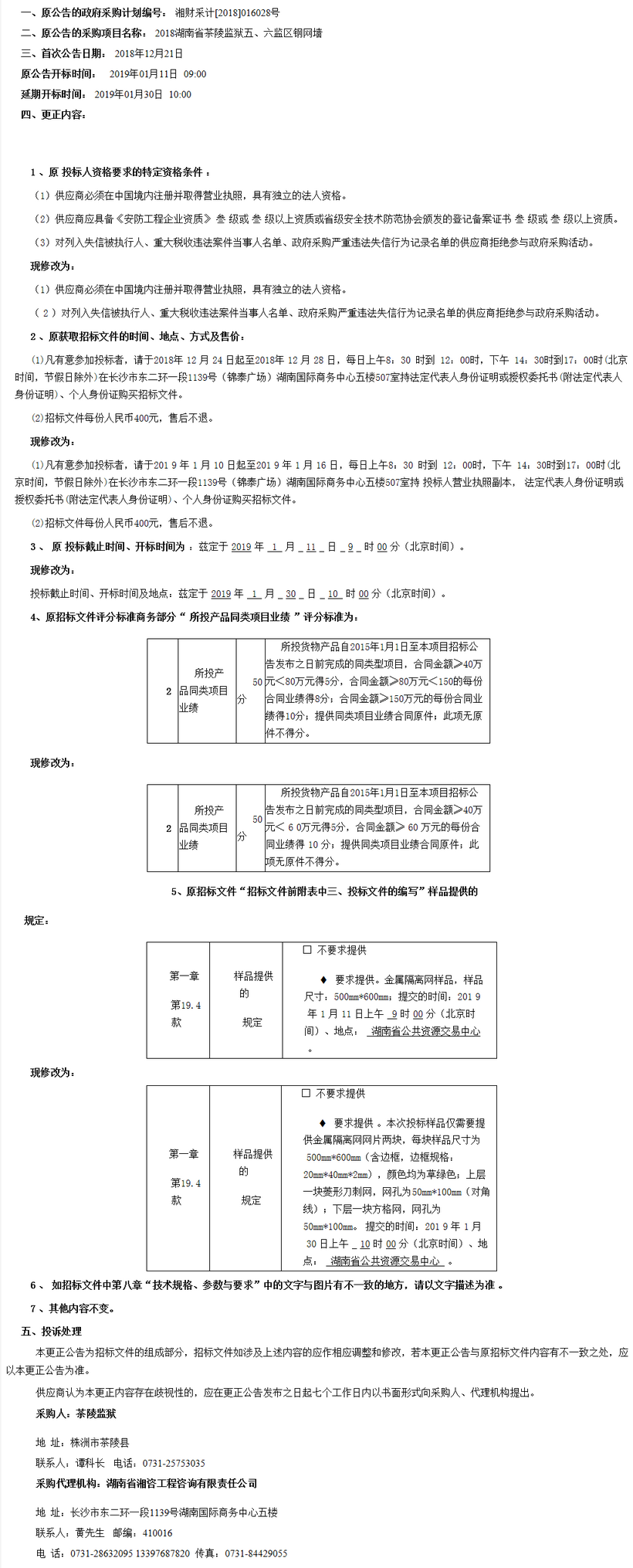茶陵監(jiān)獄2018湖南省茶陵監(jiān)獄五、六監(jiān)區(qū)鋼網(wǎng)墻項目公開招標更正公告