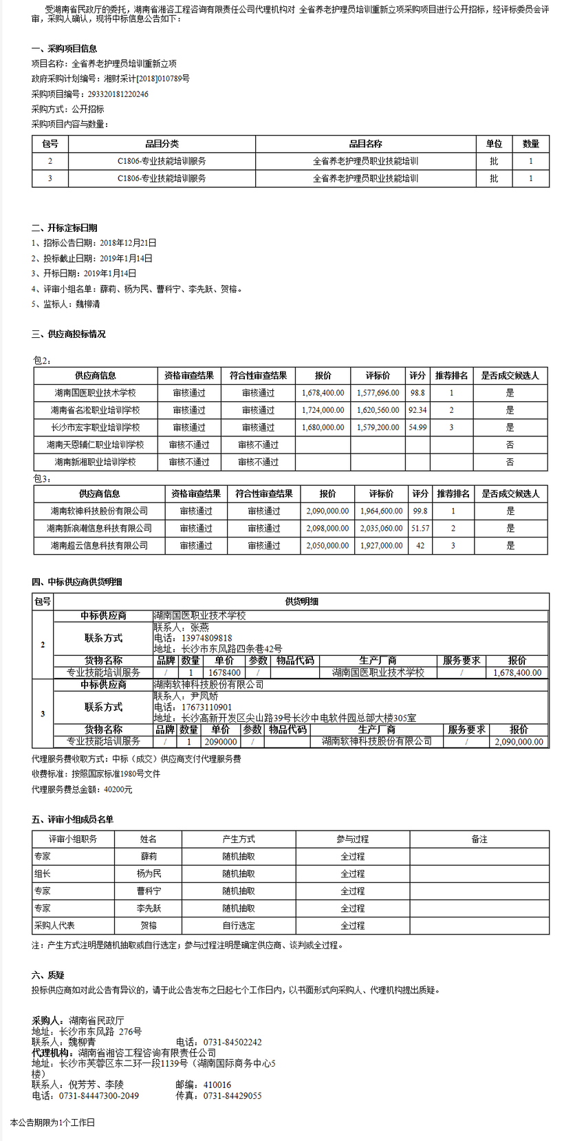 湖南省民政廳全省養(yǎng)老護(hù)理員培訓(xùn)重新立項(xiàng)公開招標(biāo)中標(biāo)公告