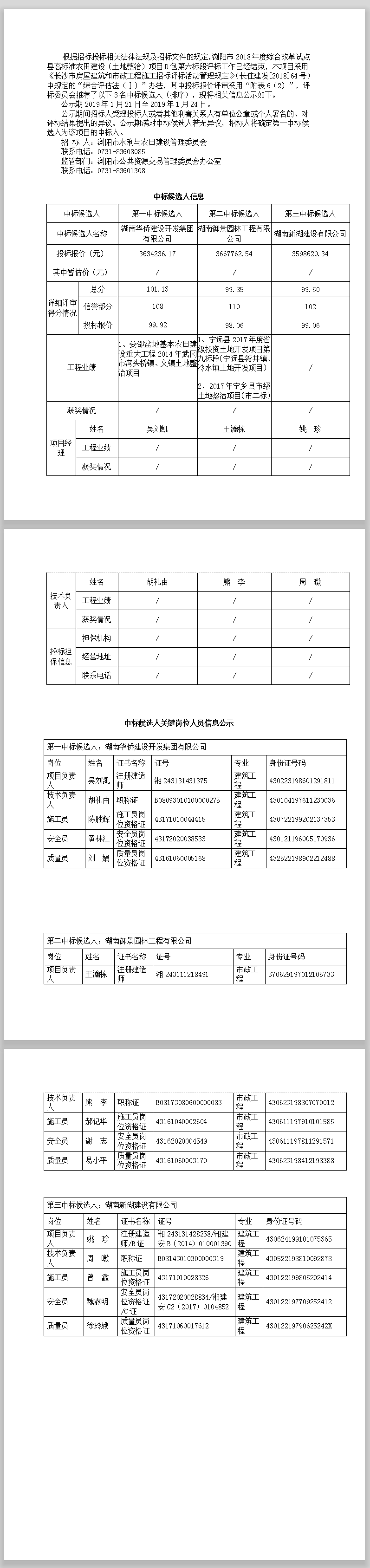 瀏陽(yáng)市2018年度綜合改革試點(diǎn)縣高標(biāo)準(zhǔn)農(nóng)田建設(shè)(土地整治)項(xiàng)目D包第六標(biāo)段 中標(biāo)候選人公示