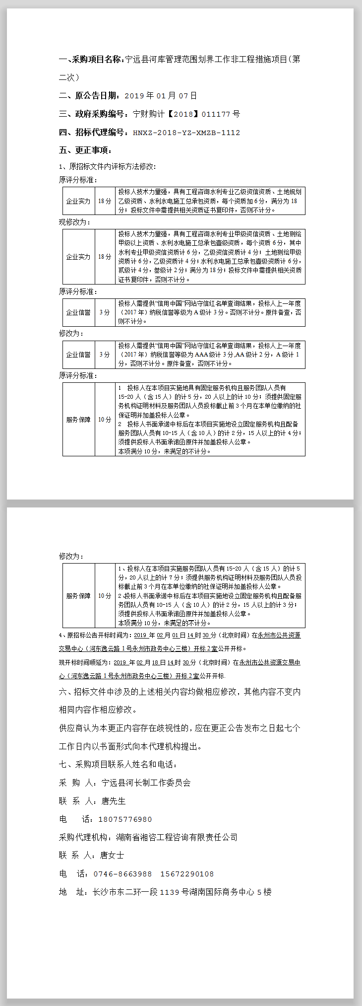 寧遠(yuǎn)縣河庫管理范圍劃界工作非工程措施項目(第二次) 公開招標(biāo)更正公告