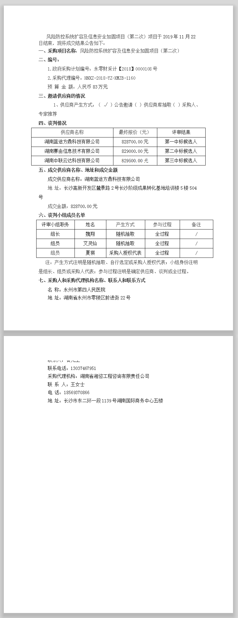 風(fēng)險(xiǎn)防控系統(tǒng)擴(kuò)容及信息安全加固項(xiàng)目(第二次)競(jìng)爭(zhēng)性談判成交公告