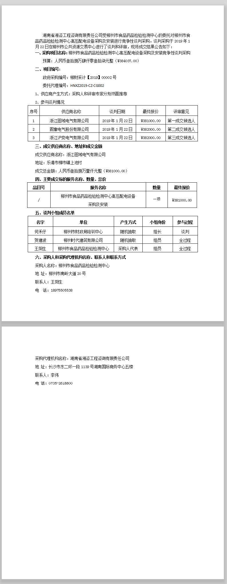 郴州市食品藥品檢驗檢測中心高壓配電設(shè)備采購及安裝 競爭性談判采購成交公告