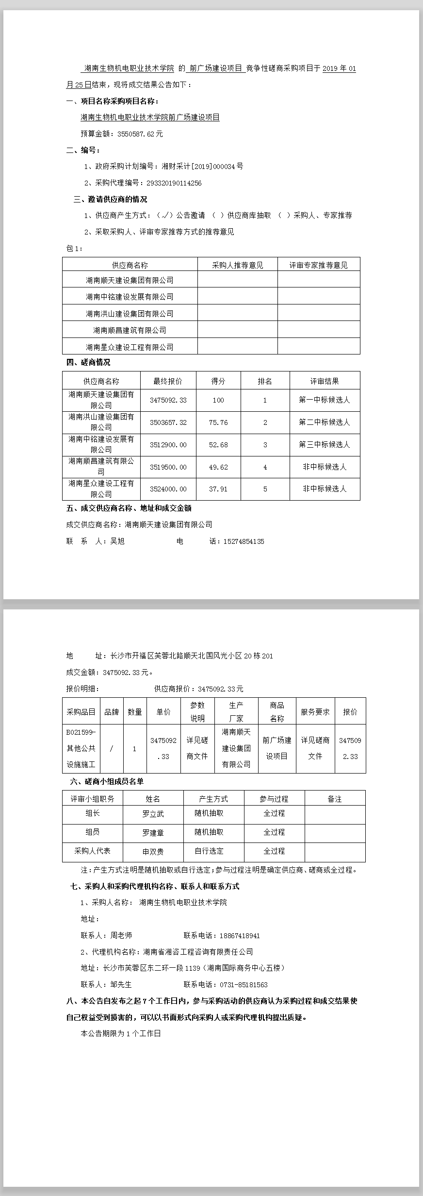 湖南生物機電職業(yè)技術(shù)學院前廣場建設項目競爭性磋商成交公告
