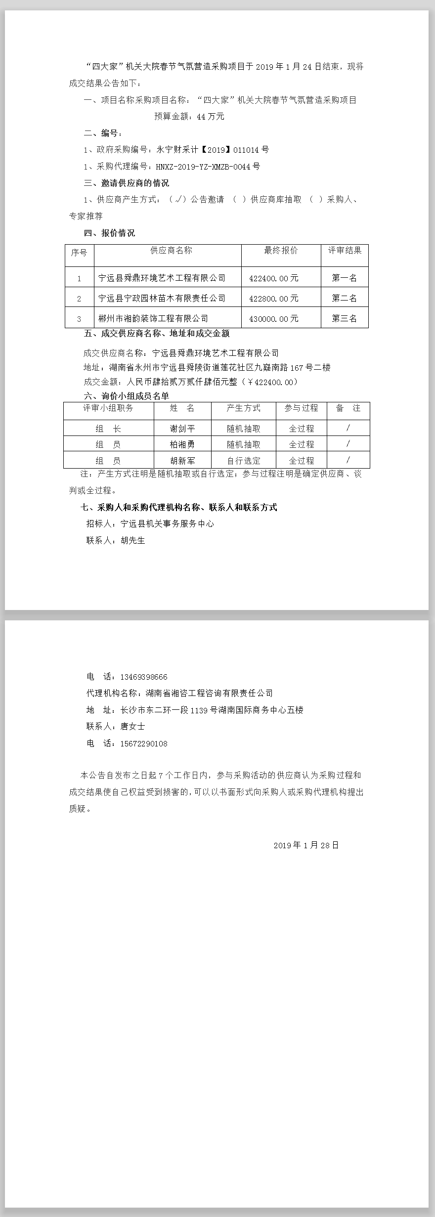 “四大家”機(jī)關(guān)大院春節(jié)氣氛營造采購項目 詢價采購成交結(jié)果公告