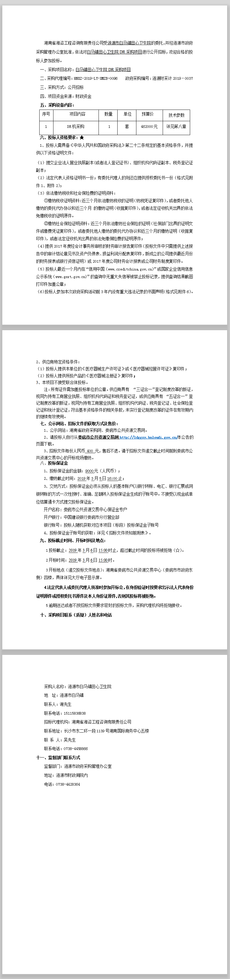 白馬鎮(zhèn)田心衛(wèi)生院DR采購(gòu)項(xiàng)目招標(biāo)公告